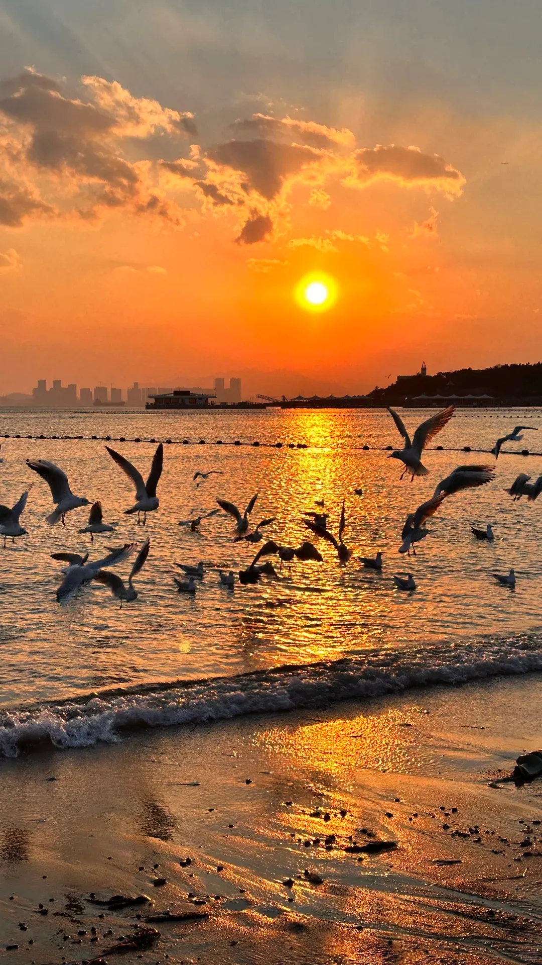 小鱼山和信号山可二选一,更推荐小鱼山,离海更近; 栈桥看日落有遮挡, 想看沙滩+海鸥的日落就去第一海水浴场, 想坐轮渡看海鸥+日落可以坐青岛轮渡(青岛轮渡站), douyin或meituan买最后一班船,一楼是客舱座椅,二楼是甲板观景,上轮船后尽量坐在门口靠救生圈位置方便抢到最佳观赏位。 近期日落时间17:30-17:40,提前半小时到达。 住宿推荐:漫心/亚朵/桔子,都是栈桥店