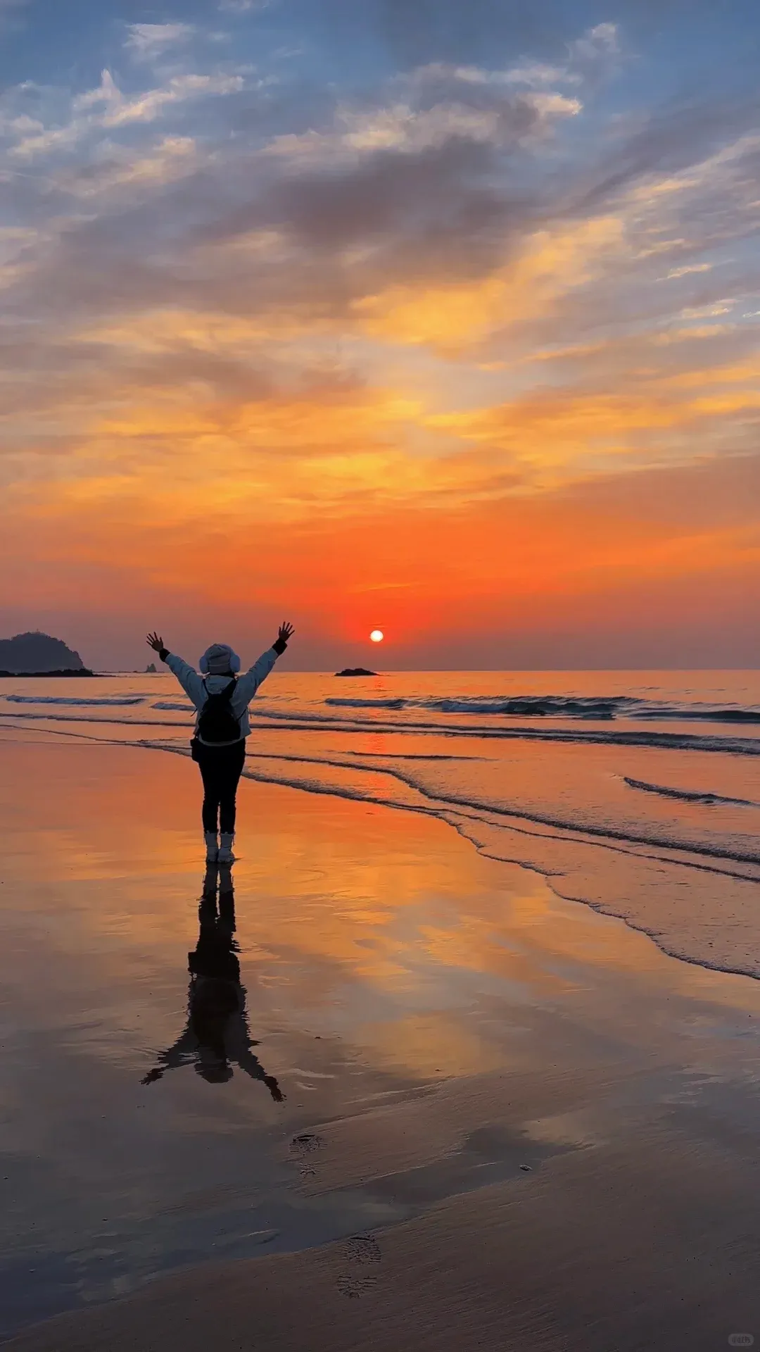近期日出时间6:45-6:50,提前半小时到。 想看沙滩日出就去石老人; 雕塑园也可看,礁石多; 栈桥可以看日出和海鸥同框,但日出时有遮挡,太阳从建筑后面出来; 第三海水浴场也可看沙滩日出,离五四广场近。 燕儿岛智慧公园虽然小众,但真的很文艺。 从小麦岛往后的地方都能看日落,这条线路很长很费腿,可根据情况取舍。 住宿:桔子水晶(五四广场店)