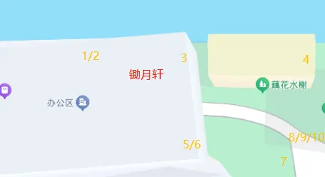 A5/A6:在两个花窗,在藕花水榭院子的西南方向。