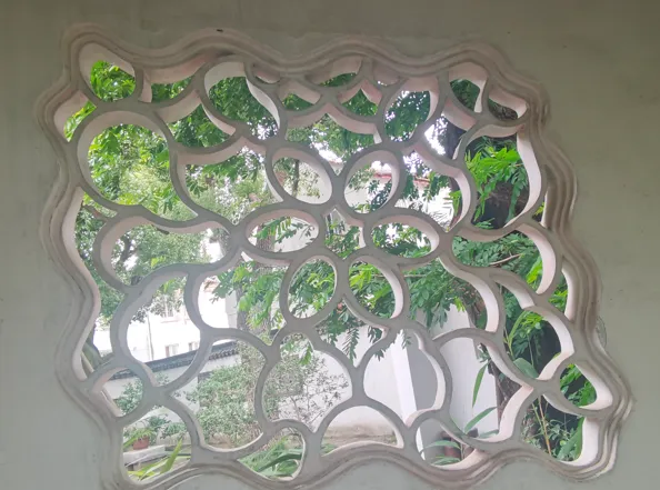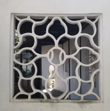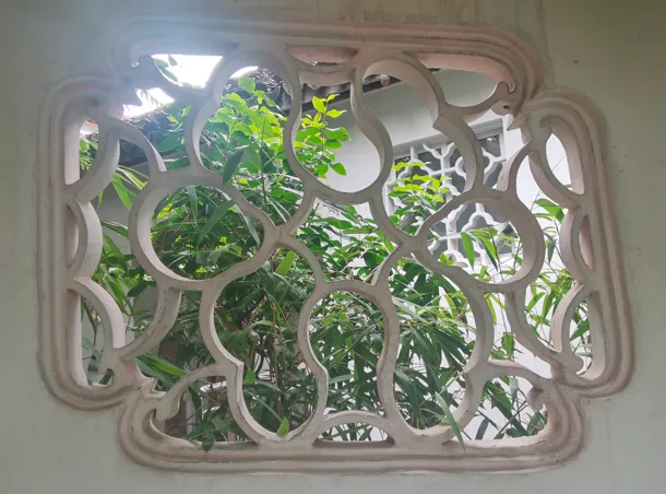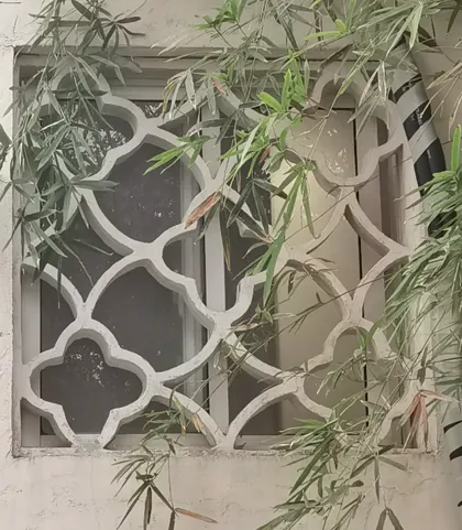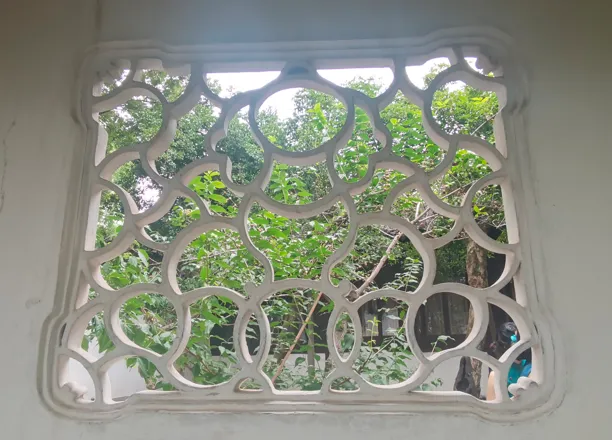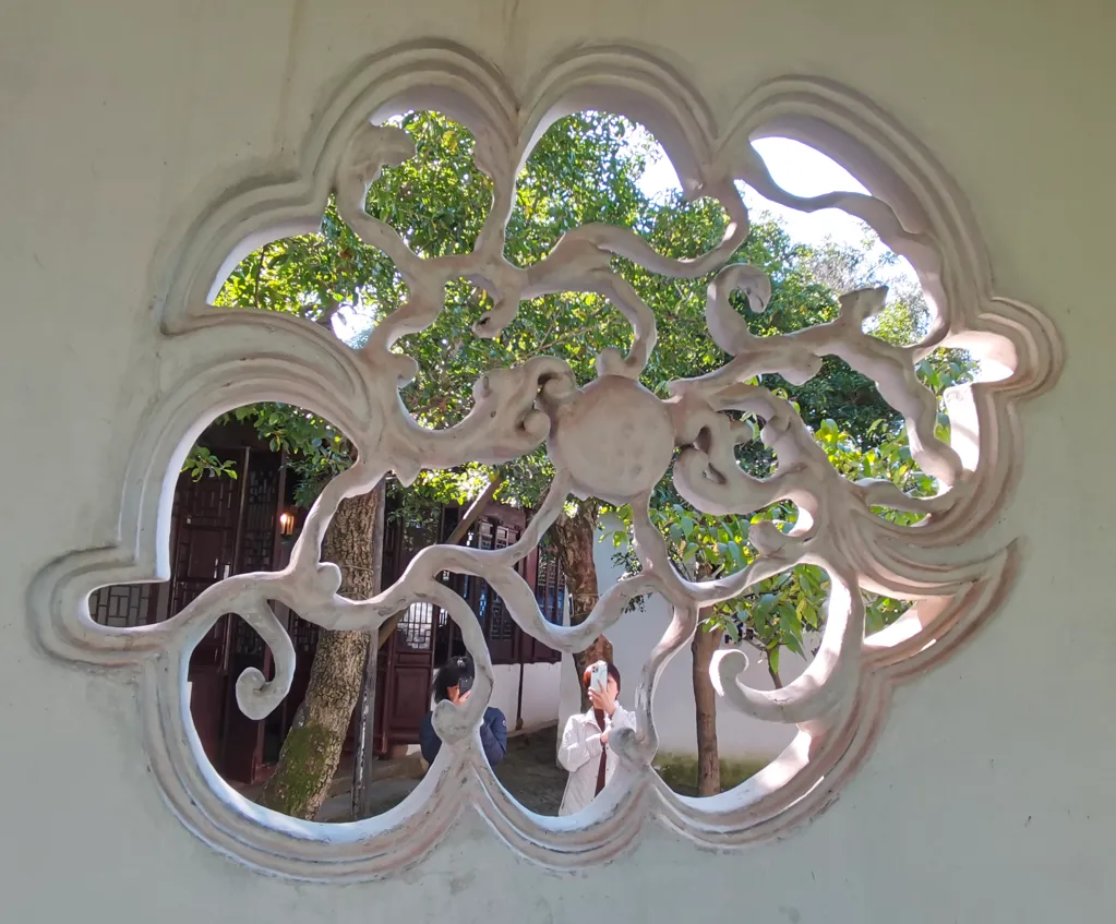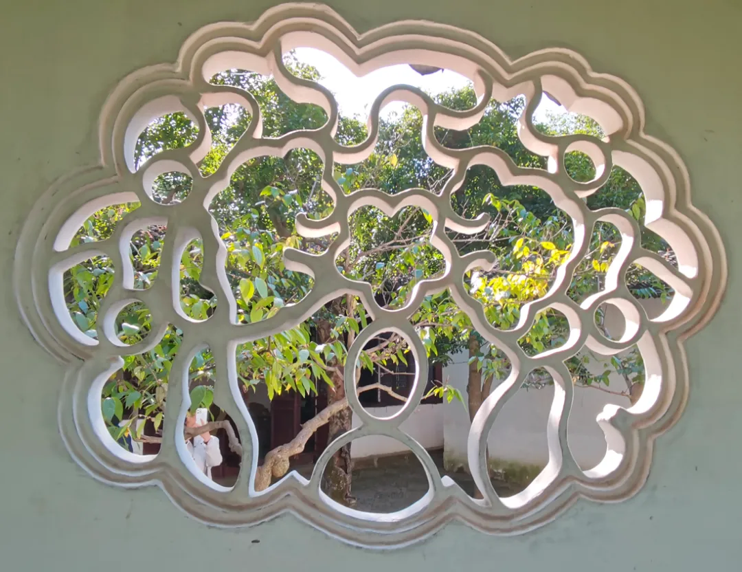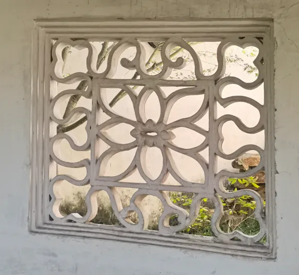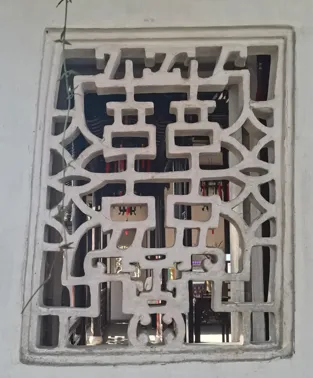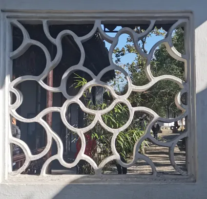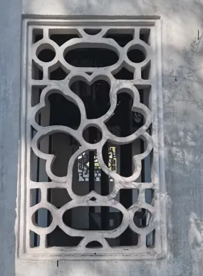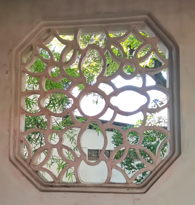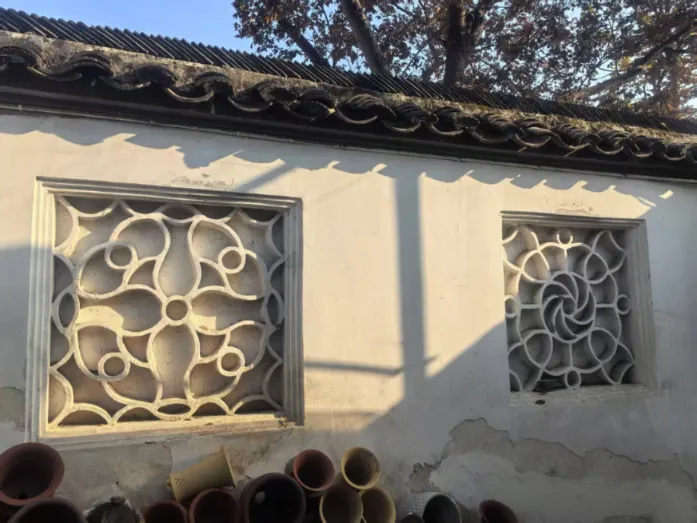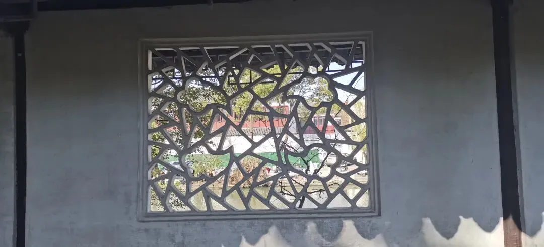 之前,我一直在“凑”108这个数字,所以,当我数到106的时候,就没有考虑那个厕所上的花窗,因为很显然,加上去总数就超过108了。另一个原因是,厕所应该新修过,那花窗,和其他地方的花窗相比,显得格格不入。