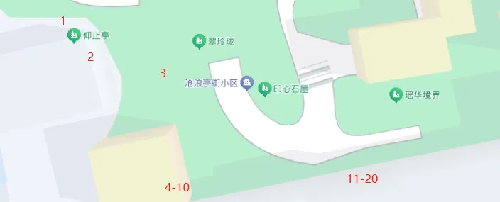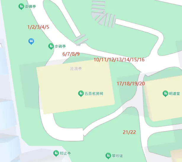 景点轶事:沧浪亭的花窗(第三版)之前,关于沧浪亭的花窗,曾经关注过,详细请见 景点轶事:沧浪亭的花窗。 景点轶事:沧浪亭的花窗(第二版) 因为数过N遍后发现数量仍然不能达到传说中的108个,所以,在苏州寒山闻钟论坛上发起咨询帖子,问问沧浪亭的工作人员,究竟缺在哪里? 以下是百度地图中沧浪亭的平面图。