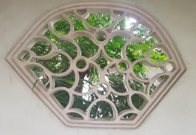 E19/E20/E21:闻妙香室进门西北围墙转角共三个花窗。