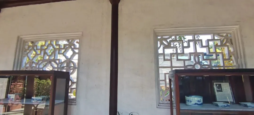 至于东部花房未开放区域,那是常年大门紧闭的,谁能知道里面也有花窗呢。但花房就在“明道堂”东侧,工作人员说有15扇花窗,是否会把明道堂和花房的共有围墙上的5扇重复统计了呢。他提供的照片上只有7+2扇,经现场察看比较,他说的15扇应该是包含了与明道堂共用院墙上的5扇的。我不想因这种小事再去麻烦人家,所以也未去找他们,权且就按有照片的9扇计算吧。