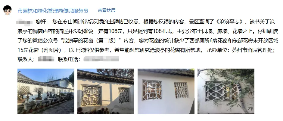7 补遗(花房) 2025-12-18,在苏州寒山闻钟论坛上发起了咨询帖子,留园管理处的工作人员回复: