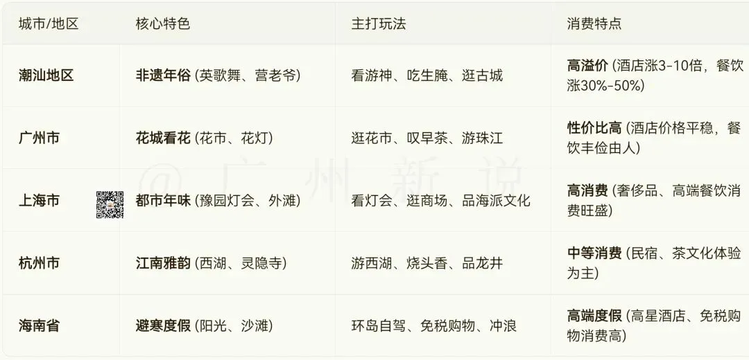 特色解读:潮汕的爆火源于其稀缺的“沉浸式年味”,而上海、海南则依靠成熟的商业配套和自然禀赋吸引高端客群。