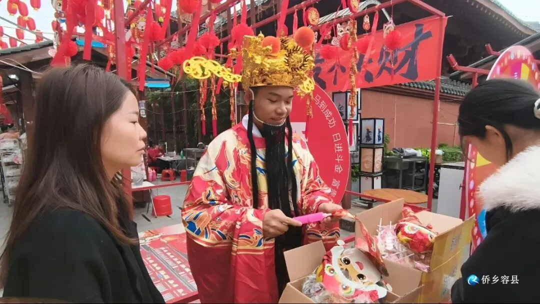 集市现场,古风古韵的装饰与熙熙攘攘的人群相映成趣,仿佛瞬间将人们带回到繁华的盛唐时代。各式摊位集中展示了容县本土非遗技艺、特色美食以及地道的农特产品。市民们或驻足观赏非遗传承人的精湛技艺,或品尝热气腾腾的传统小吃,或挑选心仪的家乡特产,现场欢声笑语交织,烟火气息升腾,构成了一幅生动的新春游乐图。