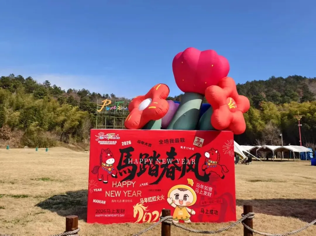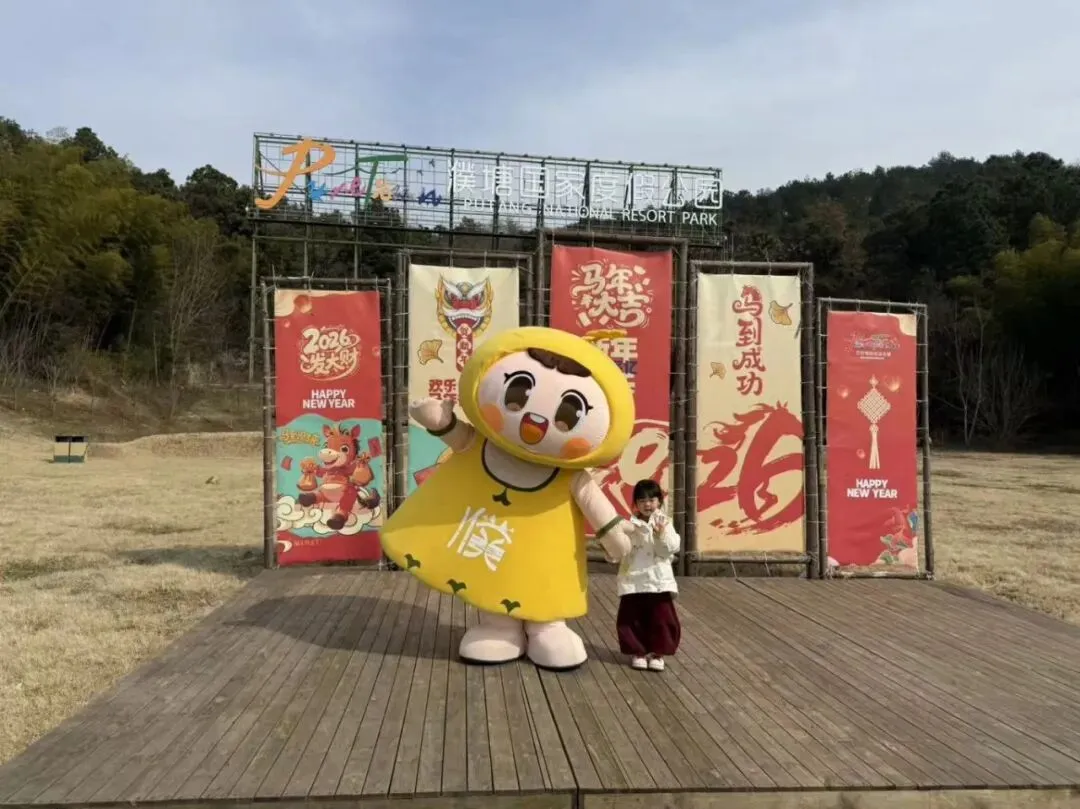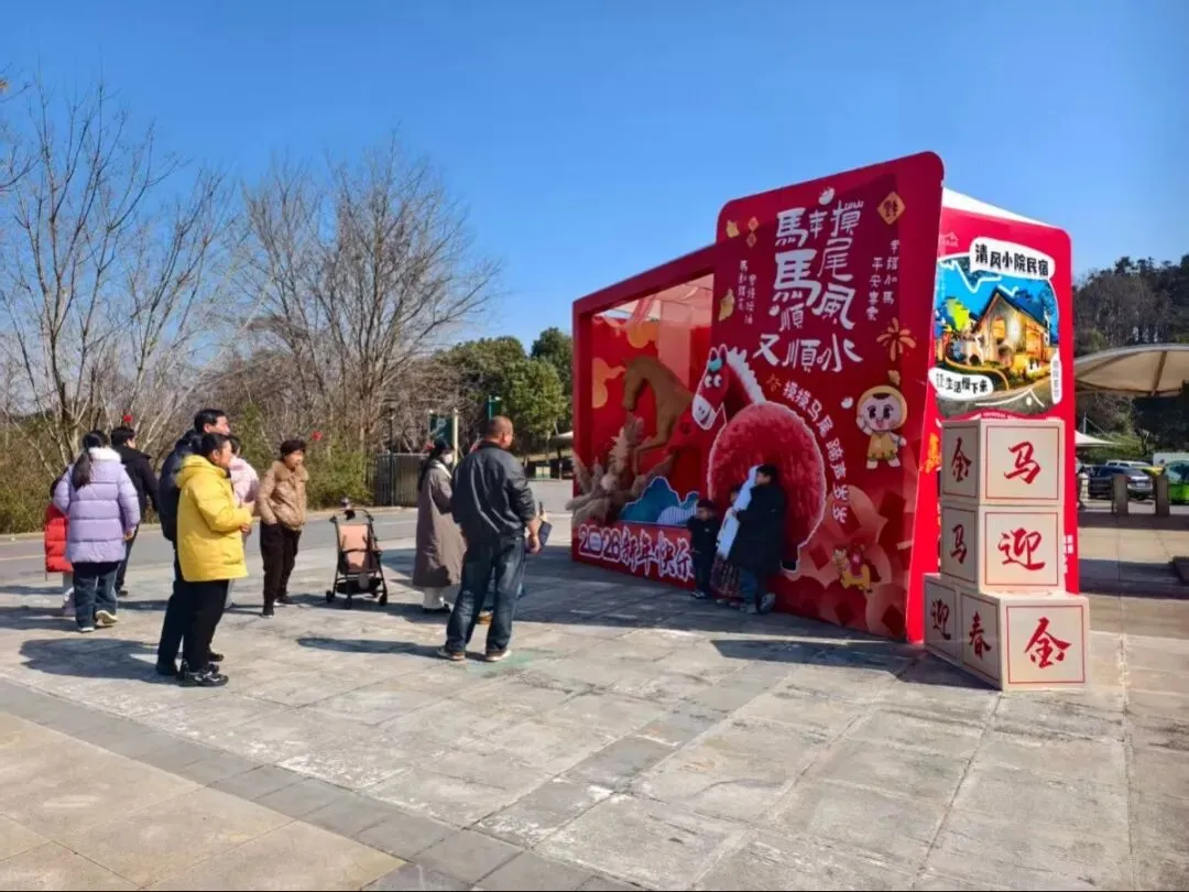 春节的濮塘景区处处欢声笑语,沿途红灯笼高高挂起,喜庆氛围扑面而来。两大马年主题打卡点超出片,随手一拍就是新年氛围感大片;可爱NPC濮小杏随机闪现,与游客趣味互动、合影送福,惊喜不断。