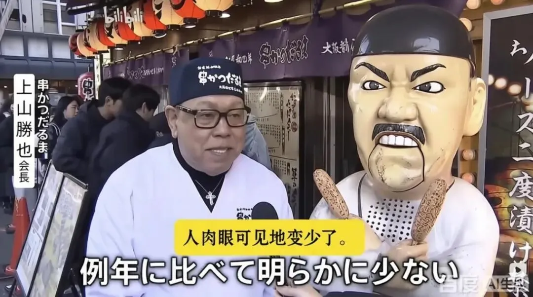 大阪老字号料理店会长坦言:今年店内中国游客屈指可数,冷清肉眼可见。
