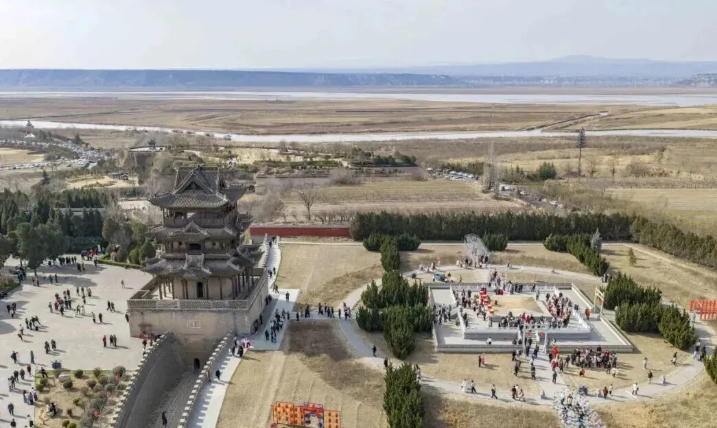 春节假期,游客在万荣县后土祠景区游玩。