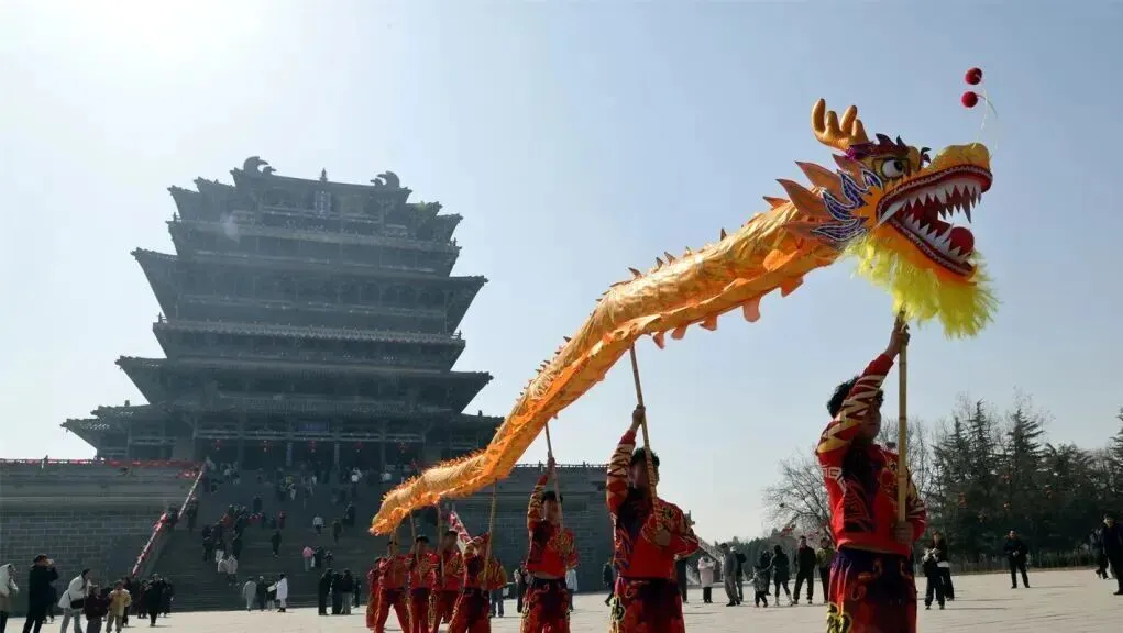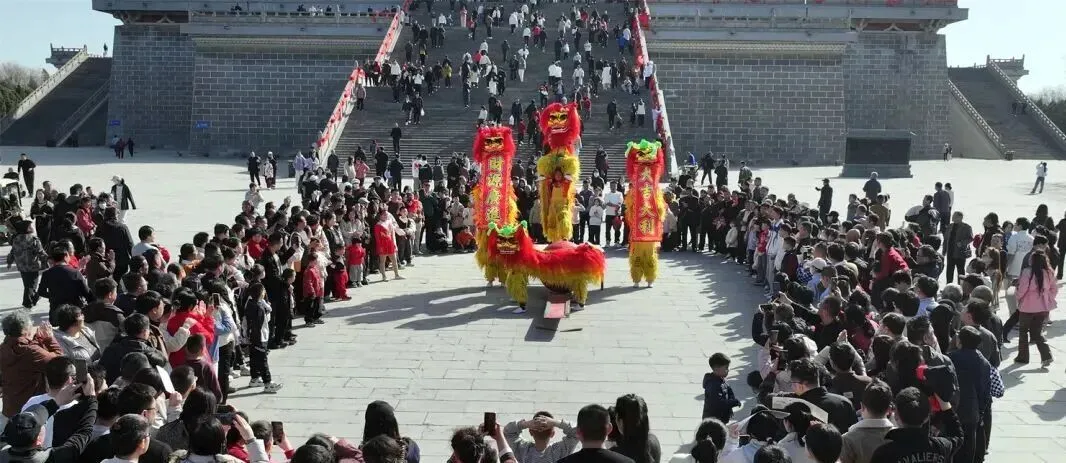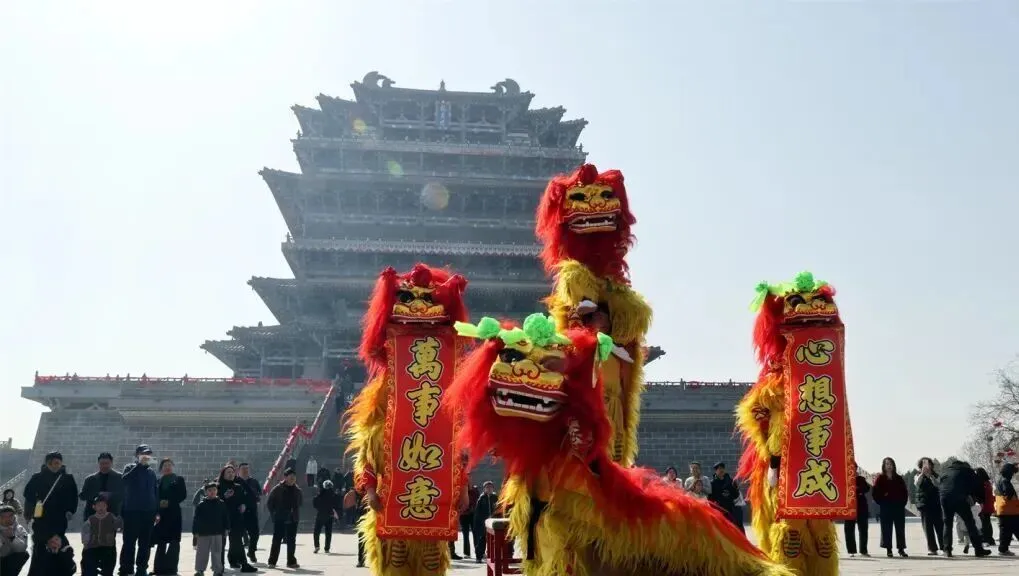 鹳雀楼:非遗舞狮贺新春 龙腾盛世耀名楼