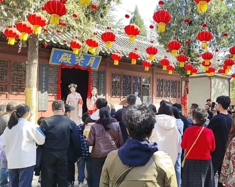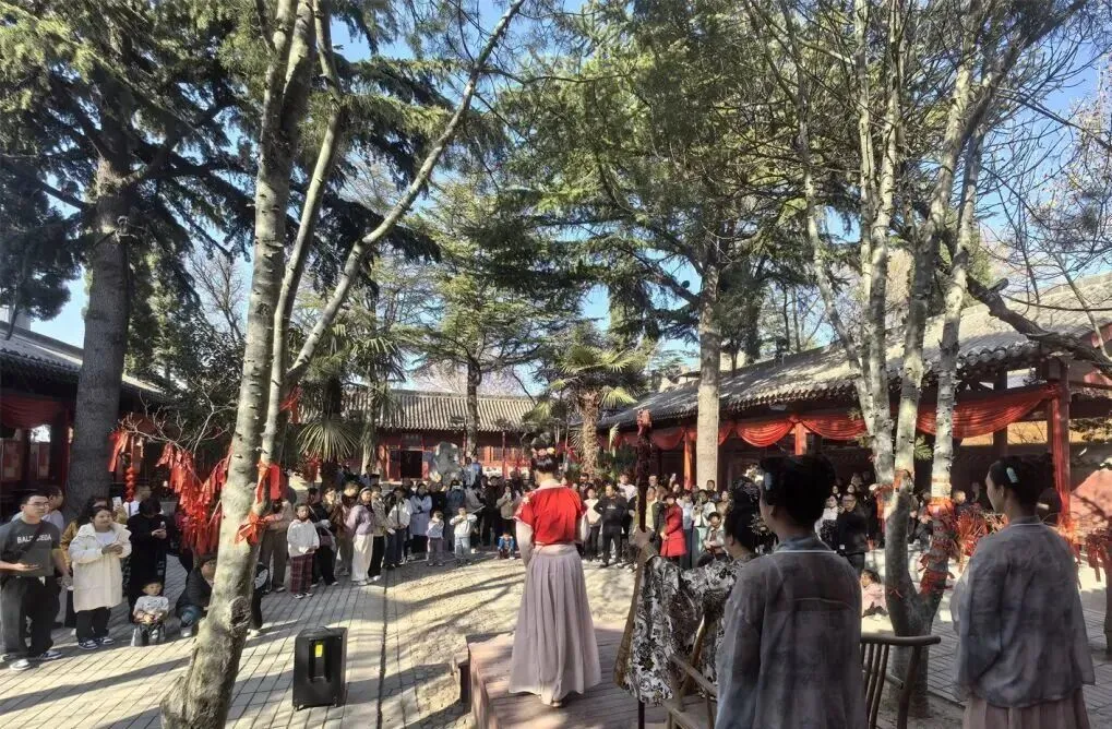 普救寺景区春节期间开展“绕塔祈福”“古装游园”等活动,让游客感受爱情文化与新春吉庆的结合。