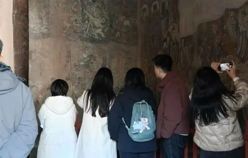 大年初三,青龙寺内游人络绎不绝,在讲解员的细致讲解中,游客们近距离欣赏精美绝伦的壁画,无不被千年艺术震撼,连连惊叹。