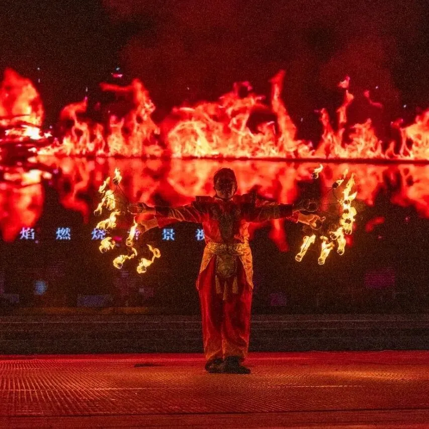 当夜幕降临,街区的精彩丝毫不减。星球灯、发光月亮、发光字牌等各式灯光造型将街道装点的美轮美奂,游客们纷纷驻足拍照留念。根祖文化广场舞台上“古韵迎春·悦动槐乡”新春街景音乐会奏响华章。喜庆韵律与现代节奏完美融合,为游客带来一场别具一格的音乐盛宴,让大家在悠扬的旋律中感受春节的独特韵味。同时《民俗洪洞范儿》《萌偶热舞派对》《仙韵槐音》《新春烈焰秀》等表演惊喜不断,全面满足了游客春节期间的视听需求。