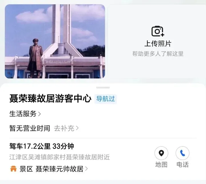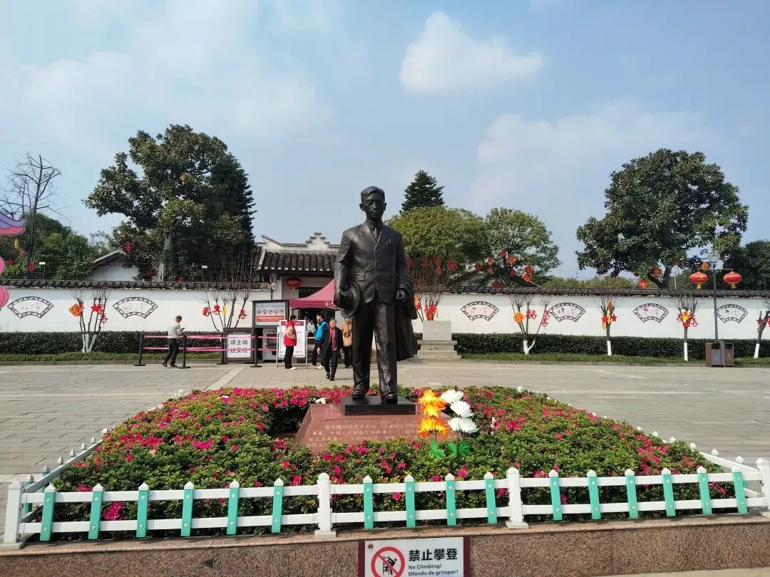 到了后将车停在门口附近,远远便能看见广场中央矗立着聂荣臻元帅青年时期的蜡像,身姿挺拔,目光坚毅,令人心生敬意。