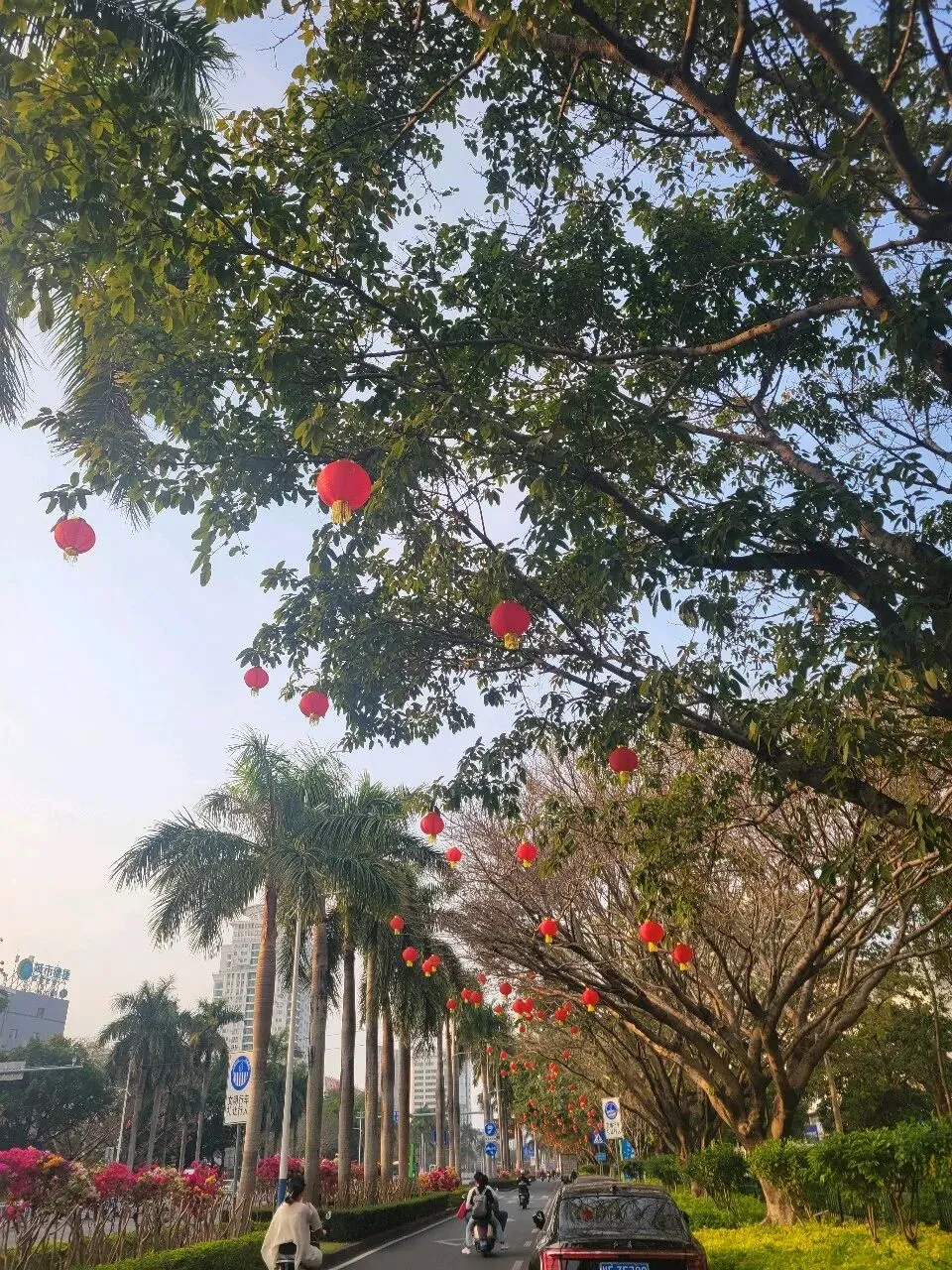 来南方过冬太舒服了,到处都是绿油油的,鲜花盛开!喜庆灯笼高高挂!