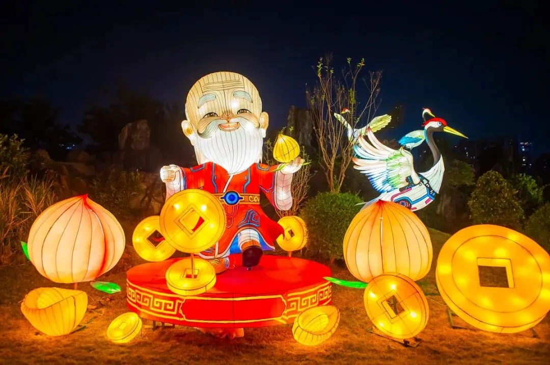 深圳锦绣中华·民俗村的非遗年,结合传统与科技,“赛博福禄寿”灯组从千家万户的年画里走来,从祖辈口口相传的祝福中走来。三星聚首,照见的是人们心中诚挚的愿望:福气满满,禄运亨通,寿长岁安。