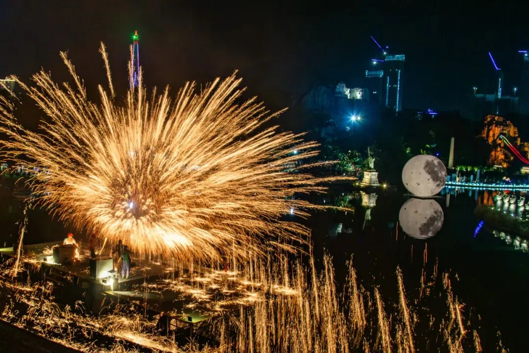 水面为镜,夜空为幕。非遗演艺与高科技光影交融,当打铁花的流星雨划过夜空,眼前的璀璨,是独属于中国人的浪漫。