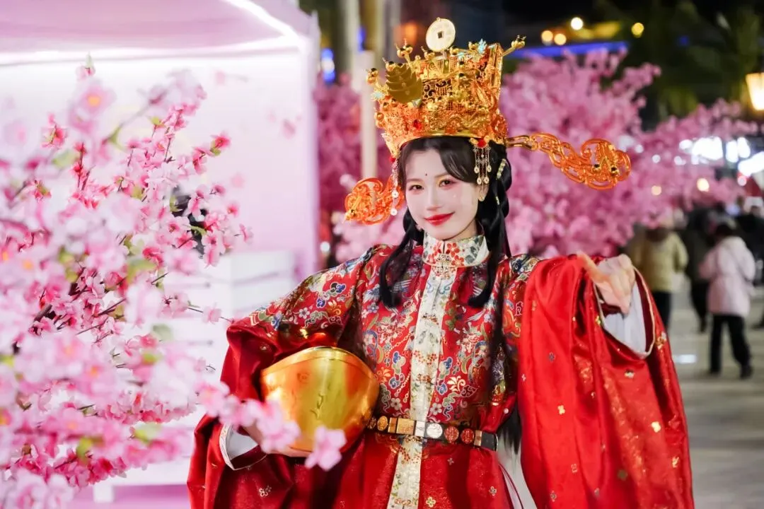 财神穿着喜庆的红袍,手里捧着金灿灿的元宝,笑意盈盈走来。在深圳世界之窗,遇见财神,接福接财接好运。