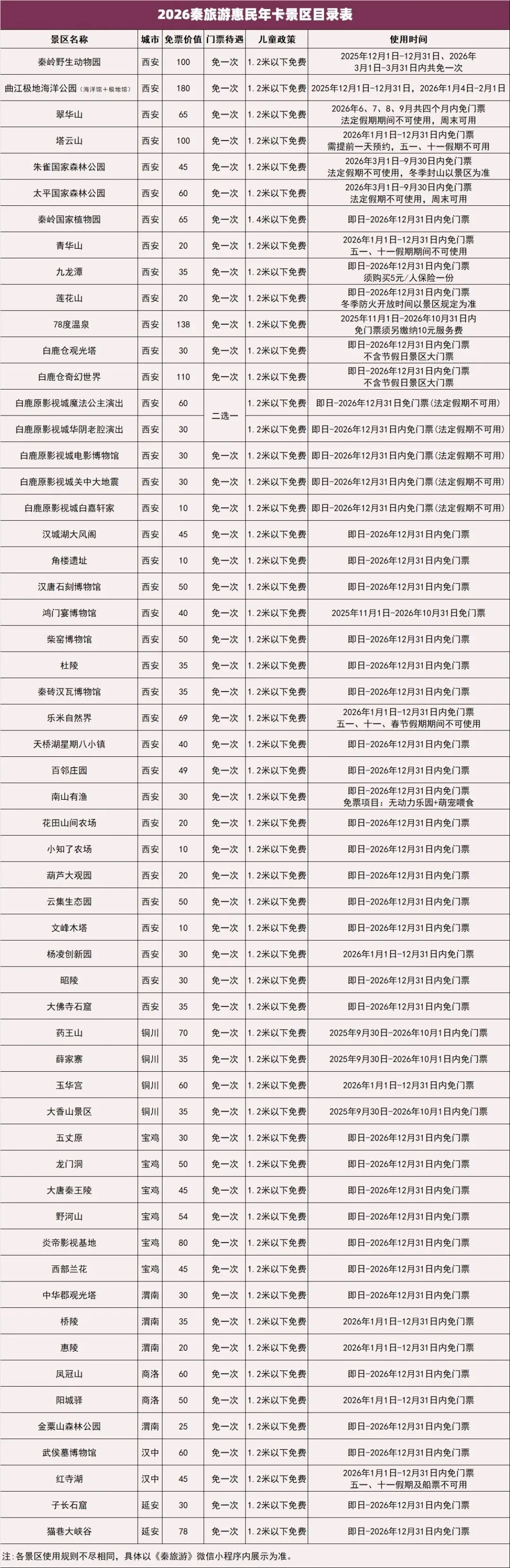 五大年卡,假期玩转陕西!2026秦旅游惠民年卡、西安游览年票、西安亲子年票..