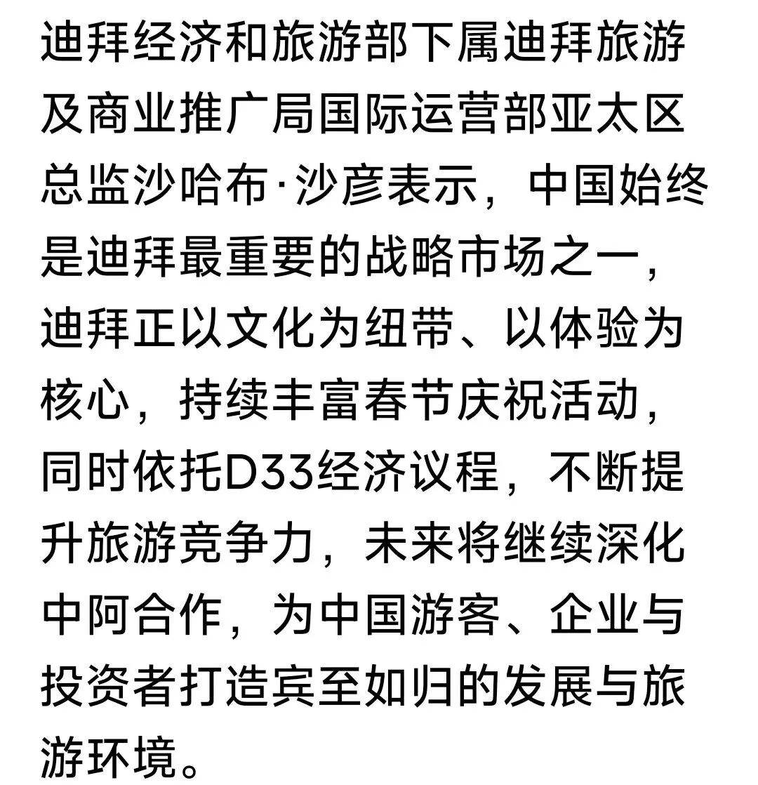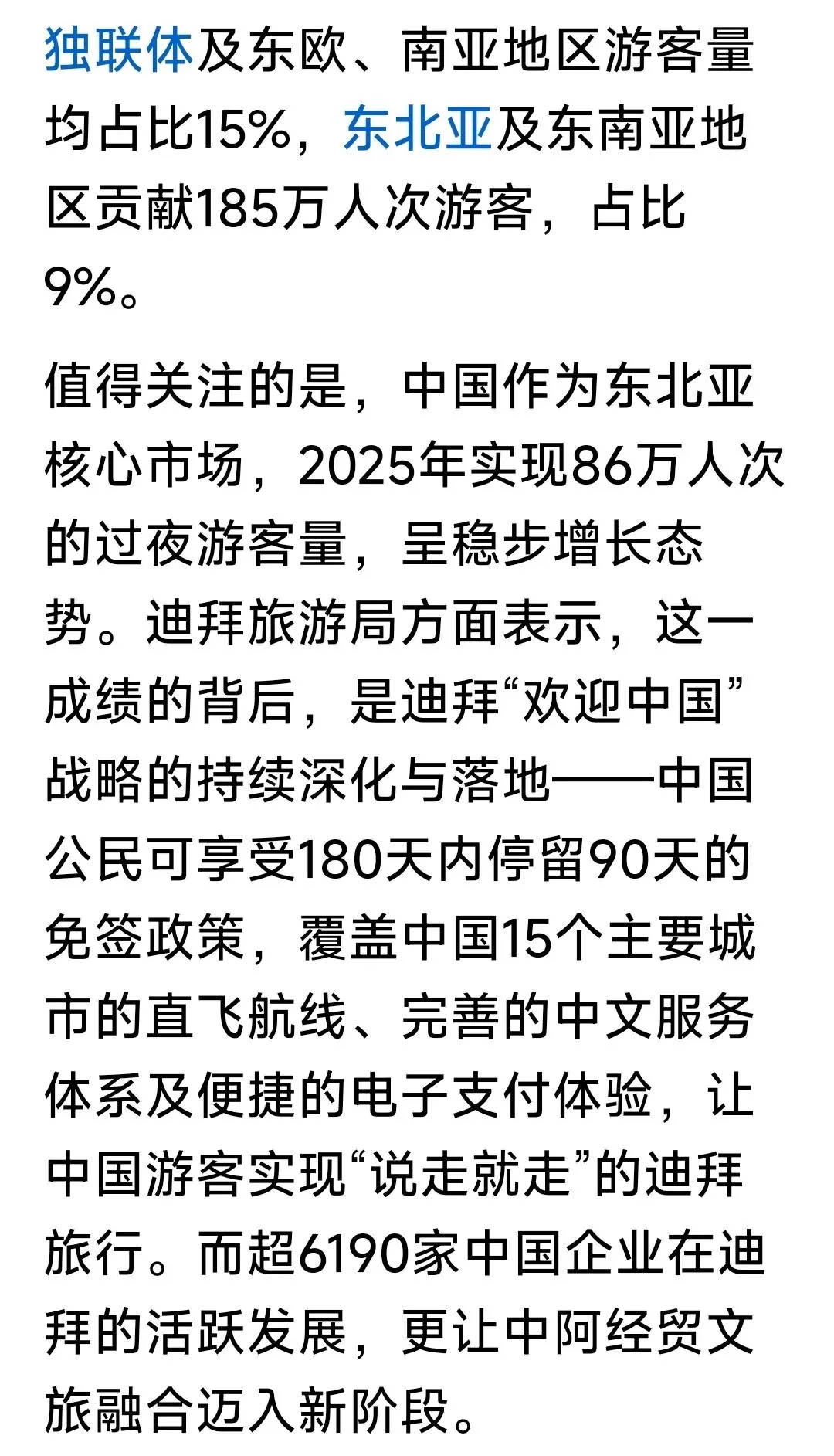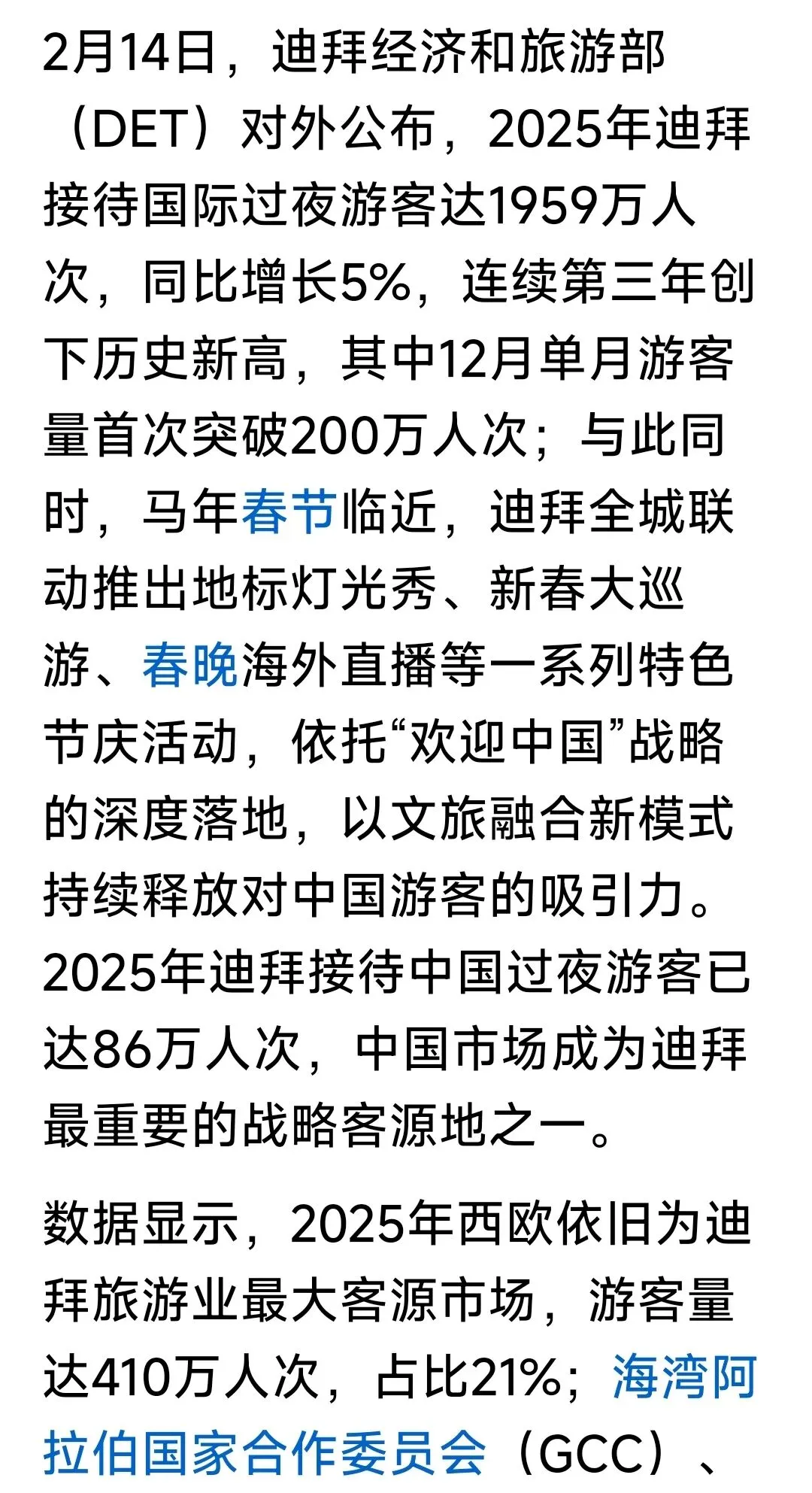 您现在的位置是:首页 > 国内旅游目的推荐 > 正文 国内旅游目的推荐 86万中国游客撑起迪拜旅游新增长极,中国成为迪拜最重要的战略客源地之一! admin2026年02月20日 17:57:41国内旅游目的推荐9 86万中国游客撑起迪拜旅游新增长极,中国成为迪拜最重要的战略客源地之一! 转载请说明来源于"旅荐网",部分内容转载自网络,如有侵权请联系qlwl@foxmail.com删除 本文地址:https://www.15386.cn/post/116021.html 上一篇 春节怎么玩,反向旅游看这篇! 下一篇 宝藏小镇青州旅游美食攻略,第一天青州古城 相关文章 【澄江游玩攻略大全】推荐13个小众打卡点,澄江化石地自然博物馆,月亮湾湿地公园,登山徒步,环湖骑行、帆船运动,特色美食与酒店民宿 03女大平遥古城两天一夜旅游攻略 超全攻略!西双版纳州2026年泼水节日程合集来啦(附9大游玩景点) 【游玩攻略】踏春赴野丨西区春日治愈漫游,与春天约会 南太行自驾两天一夜路线指南(宝妈带娃省心版),两天一夜能花费多少钱? 新加坡旅行保姆级攻略|首次出行必看!零踩坑、省时间,轻松玩转狮城 这份文件是真的 ��澳洲旅游签证攻略 2026第一站,佛山顺德三天两夜旅游攻略及避坑指南~ 去前必看!超实用的北海旅游攻略(海边攻略) 发表评论 取消回复 评论列表 这篇文章还没有收到评论,赶紧来抢沙发吧~