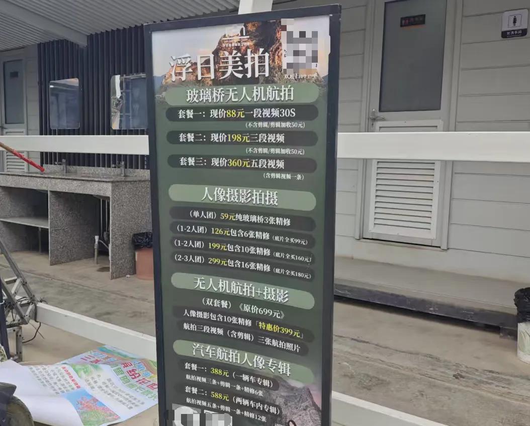 如果想站在玻璃桥上拍出“天空之镜”的感觉,就需要付费了,最低59元起。