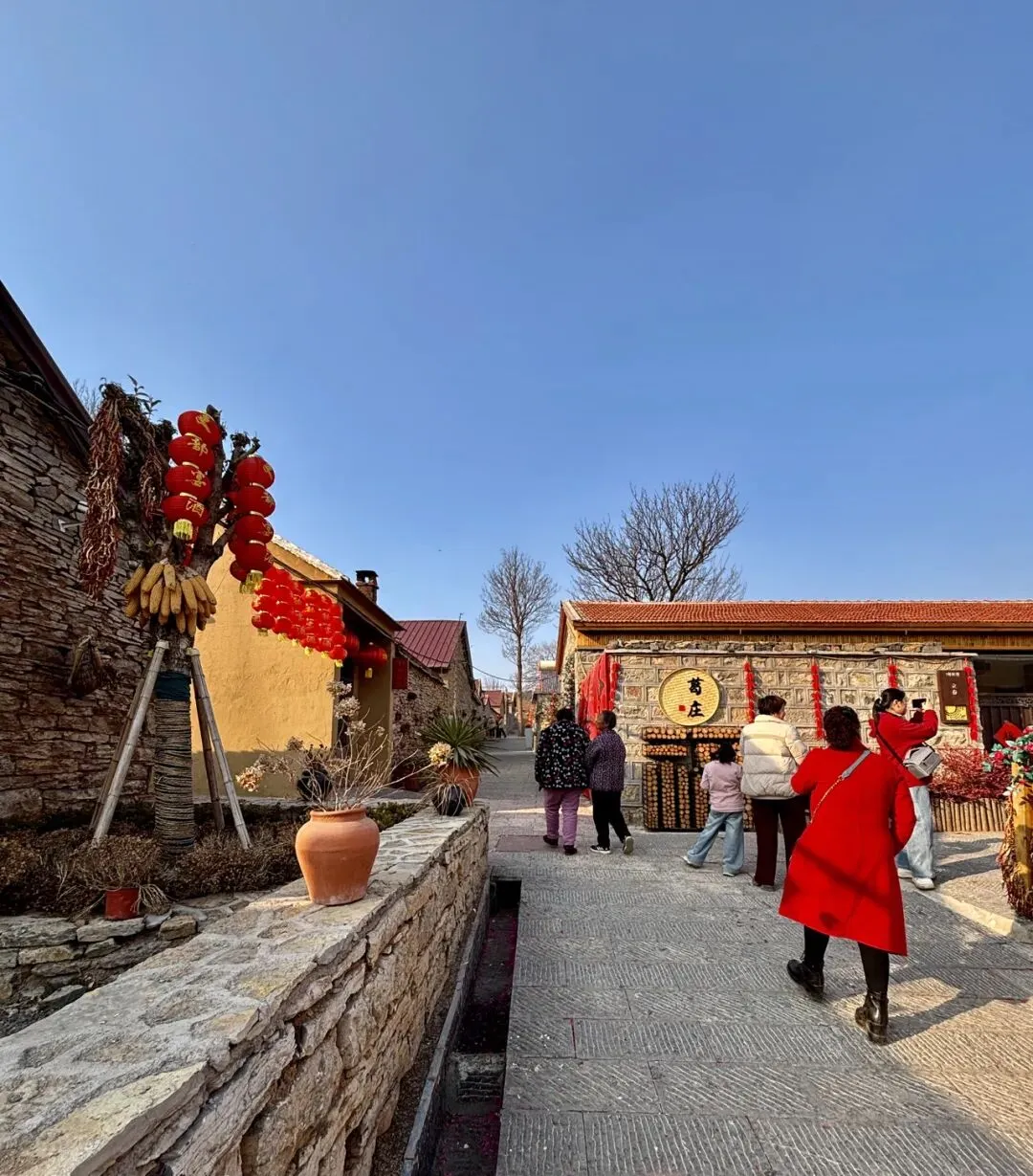 村里建有葛庄伏击战陈列馆,常设抗战史料、文物与战斗沙盘,是沂蒙地区重要的红色教育基地;配套的库区移民文化馆,则生动展示了移民搬迁与家园建设的历程。农文旅项目集群日益丰富:“陌上花开”片区、“沂水小洱海”“洱海秘境”、葛庄欢乐岛、星空露营地、水上乐园错落分布;精品民宿与古院落民宿别具特色,非遗手编、陶艺馆、沂蒙小吃等业态一应俱全。2025年五一假期5天内,这里接待游客近2万人次;冬季举办的冰雪大世界与腊月二十三至正月十五的年味主题活动,也吸引着八方来客。