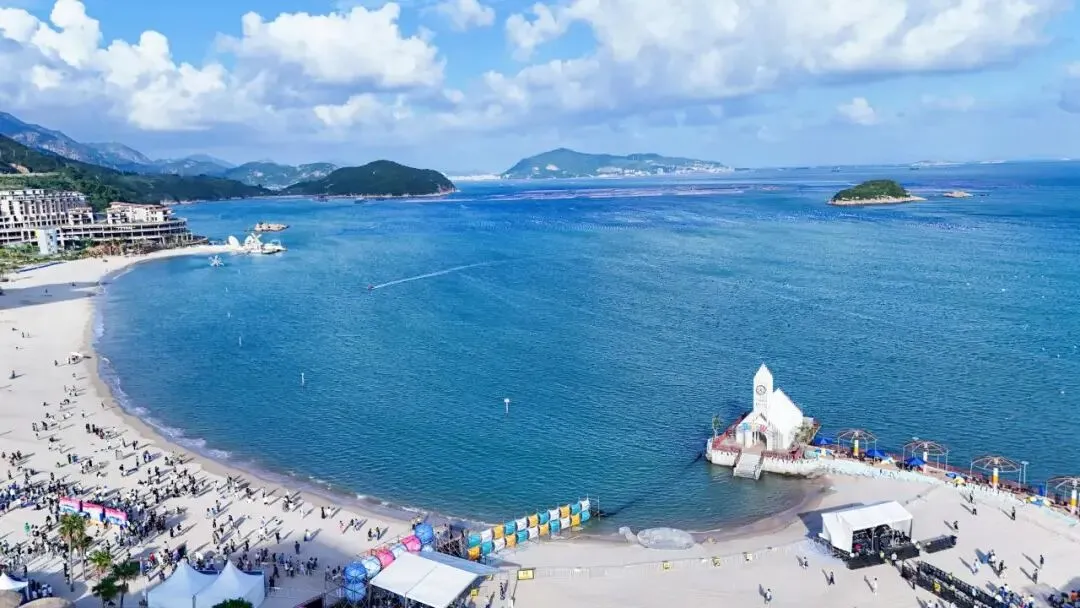 来连江玩“嗨”,首站当然是定海湾山海运动小镇。在这里,湛蓝的大海与1.1公里的绵长白沙形成了最美撞色,与沙滩上的“热带风情”相得益彰,随手一拍就是大片。若是追浪逐沙累了,就坐在海边吹着海风,听海浪拍岸的声响,所有的疲惫都能被这温柔的山海悄悄抚平。