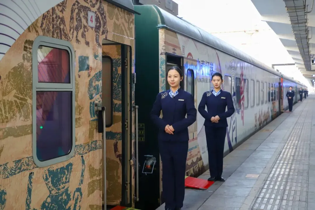 “我是特意来打卡这趟列车的!列车上的文化氛围很浓厚,每个座位旁边都有文物的介绍卡片。我还可以和其他同好交流,整个旅途特别充实!”