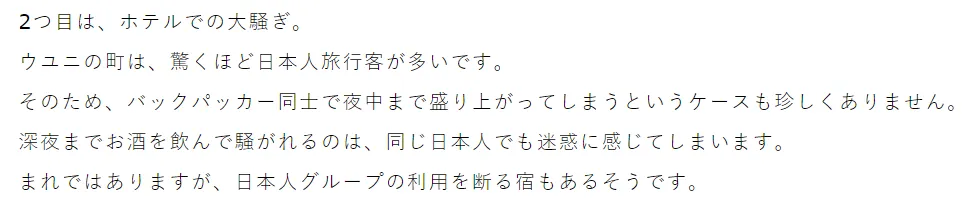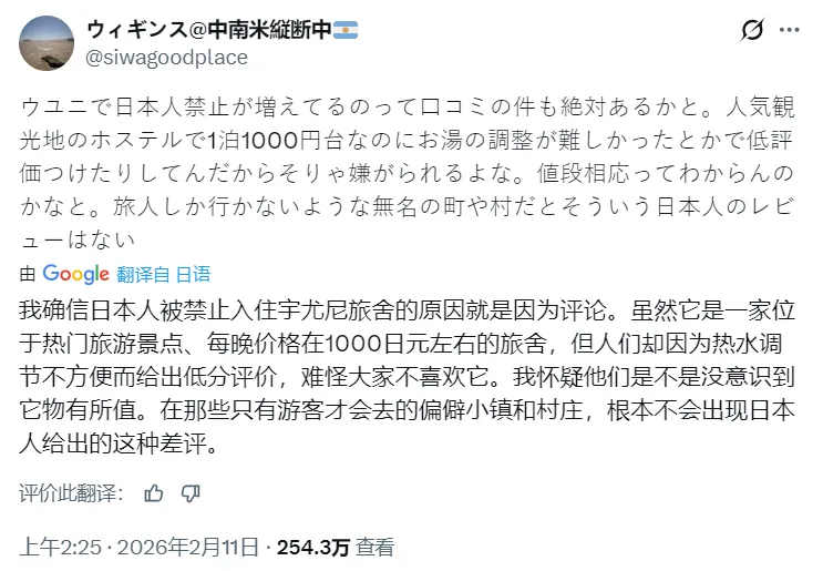 最近,有一位在中南美旅行的日本网友发了一条吐槽:“乌尤尼的旅馆,越来越多开始不接待日本人。”