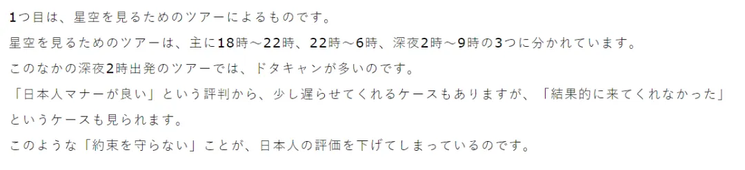 2、在旅馆吵闹、时间观念差,和“日本人很守规矩”的印象完全不一样。