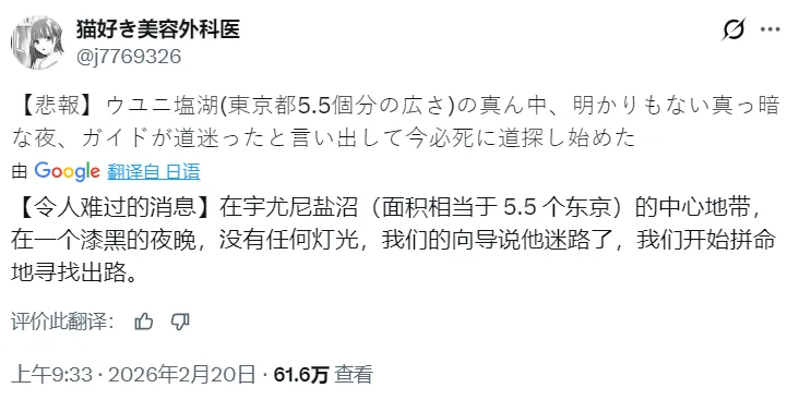 目前依然有很多人前往该地旅游,像是今天就有人发推表示他在乌尤尼迷路了,好在后面安全返回镇上。