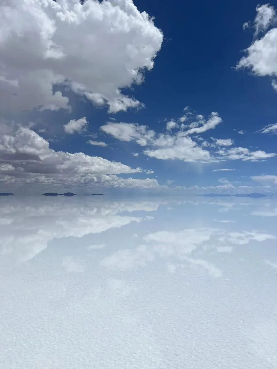 一下雨,整片盐沼就会变成“天空之镜”,地面和天空连在一起,你站在中间,像走进了另一个世界。