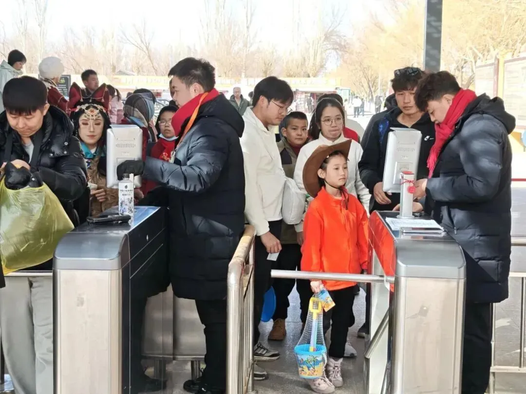 服务方面,景区在游客集中区域设置多个“暖心驿站”,免费供应姜茶、枣茶等热饮,为游客驱寒送暖。职工食堂也面向游客开放,提供平价可口的餐饮选择,让游客在领略沙泉奇观的同时,也能感受到贴心的照顾。游客中心入口处,工作人员佩戴笑脸标识,主动送上新春祝福;新设的入园抽奖环节,更为游客增添了一份旅途惊喜。