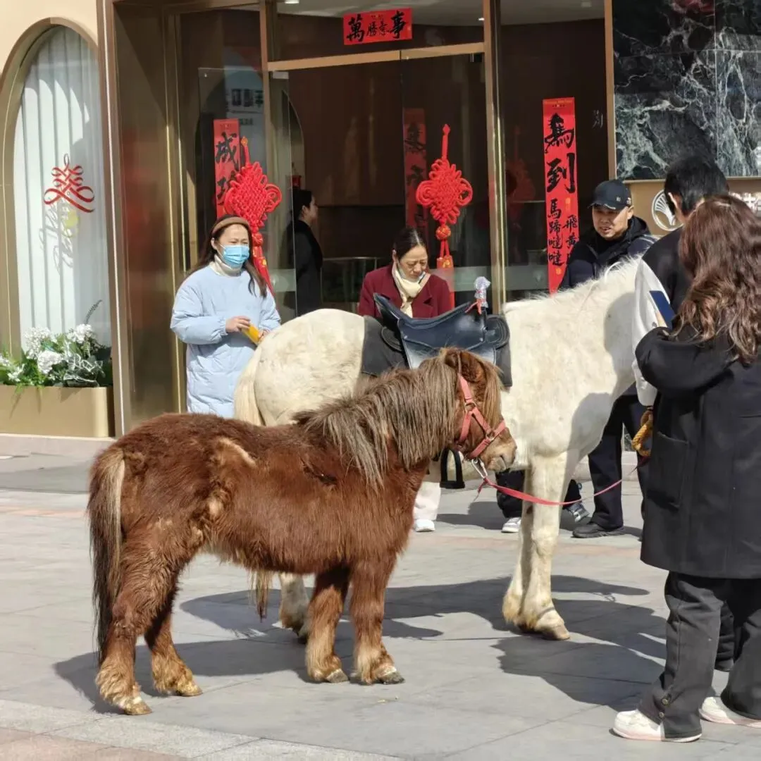 2月20日上午,有市民在铜陵万达广场门口偶遇憨态可掬的小马驹,萌态十足的模样吸引路人关注,成为春节里一道趣味十足的温馨小风景。