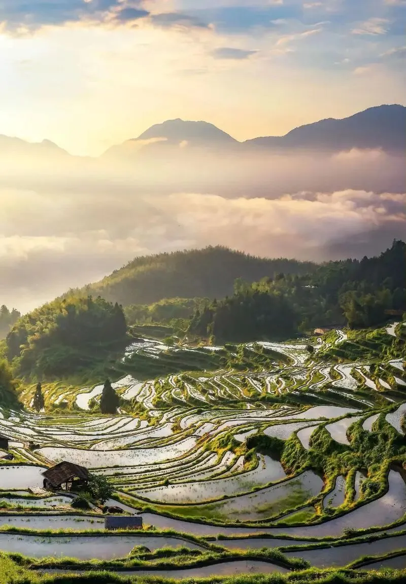 村里老人说,三十年前这片山全是碎石坡,村民想种稻子,就用钢钎凿开石头,背土填缝,一亩田要耗掉三代人的力气。现在你去看,梯田顺着山势拐出九道弯,每一层的田埂都像用尺子量过一样直,春灌时水满田畴,像给山系了条银腰带。
