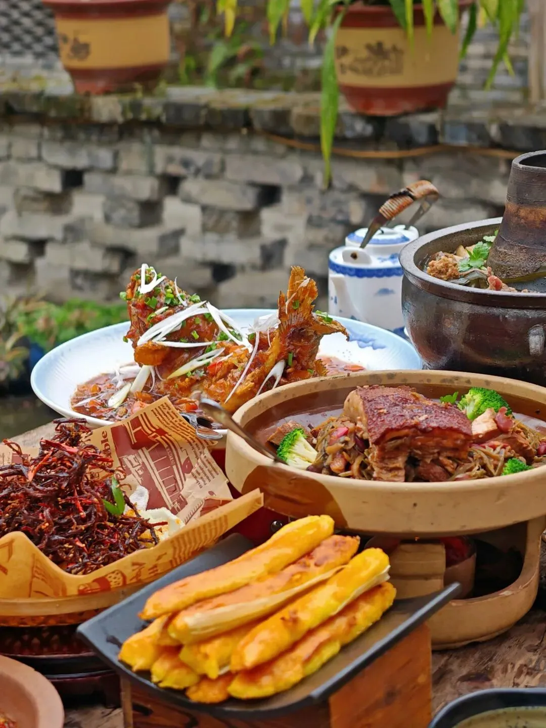 避坑提示:别找“标着‘农家菜’的大饭店”,要找“门口晒着菜干、院里跑着鸡”的小馆子。 菜单别看图片,直接问老板“今天地里有啥”——他们会告诉你“刚摘的空心菜”、“塘里刚捞的鲫鱼”,甚至“后山的野菌子,要不要试试?”