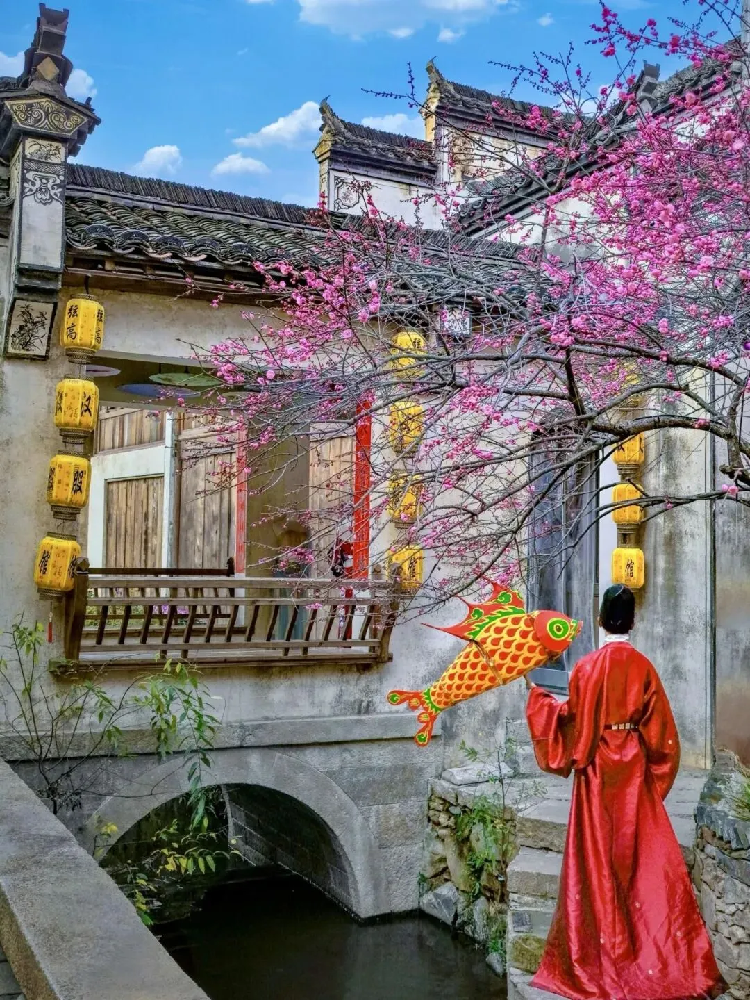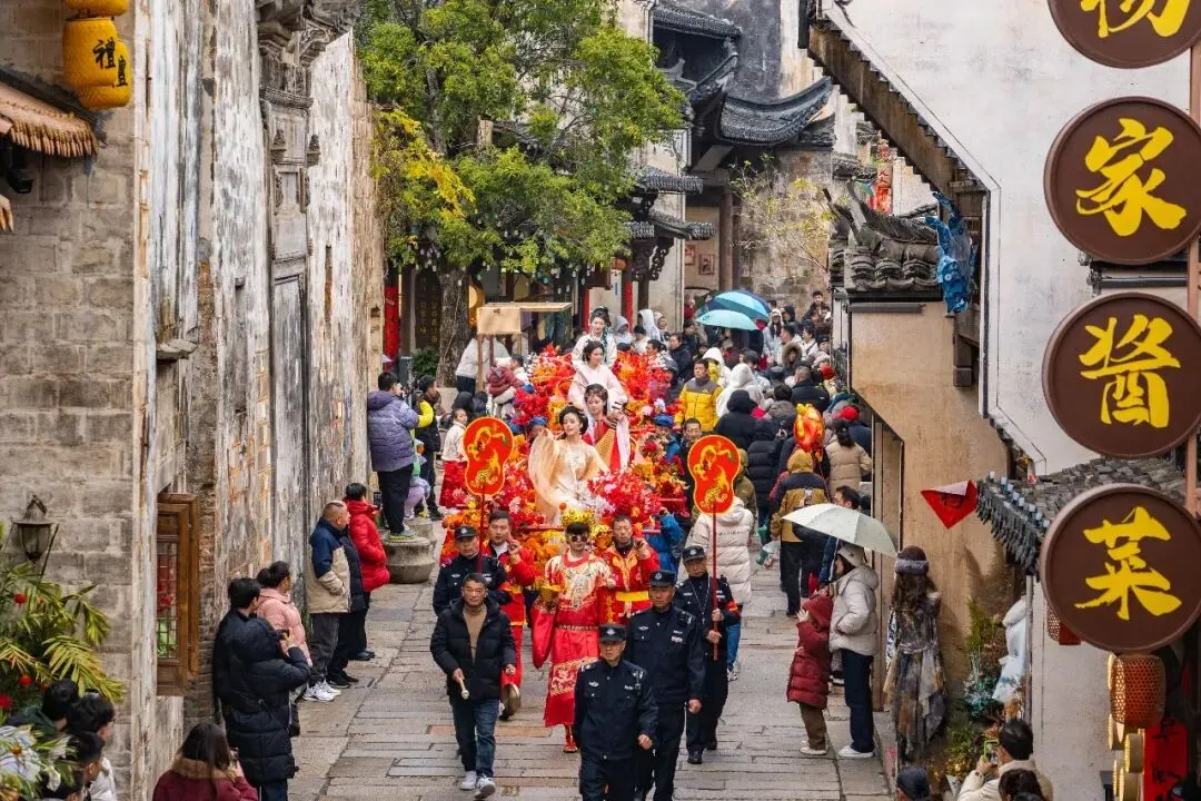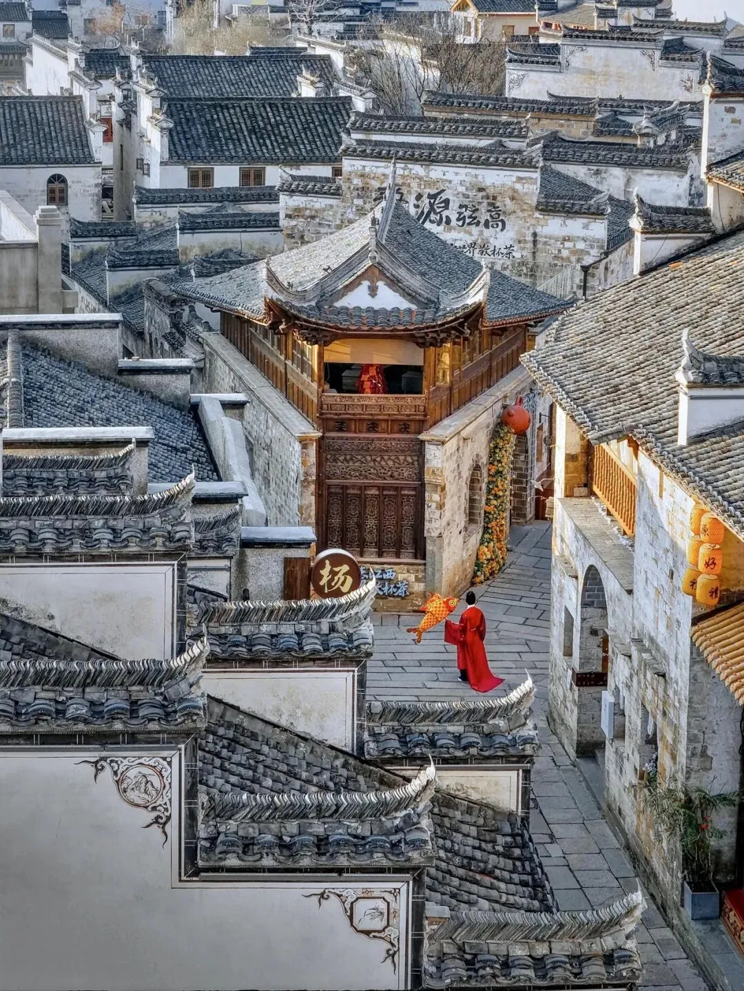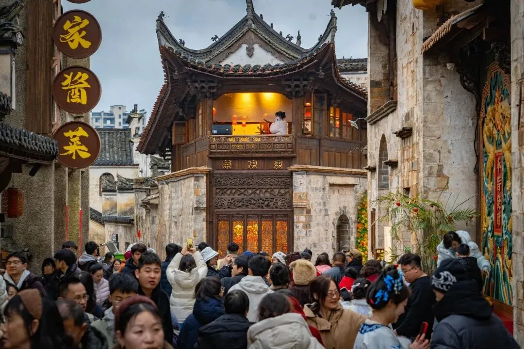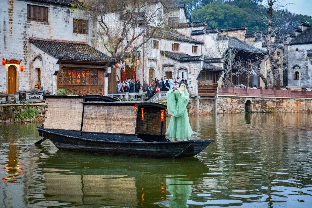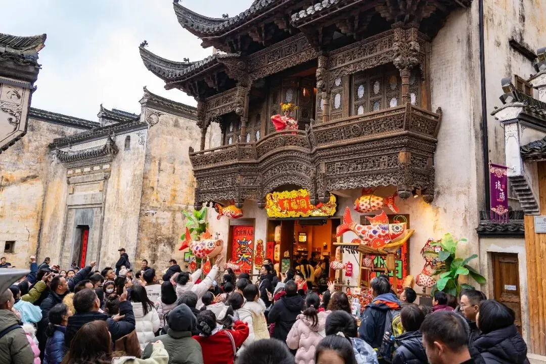 推窗见马头墙,夜闻爆竹声,白墙黛瓦间藏着徽州文脉与烟火,让新春福气伴你入眠。