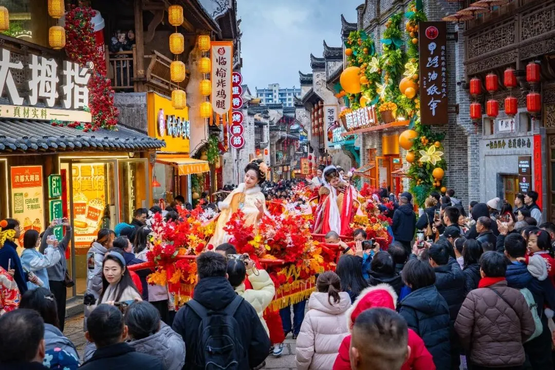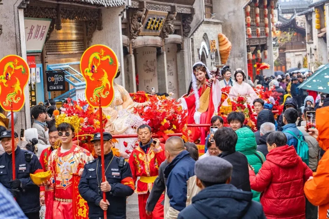 财神爷定点分发新春福礼,随后跟随国色天香队伍沿街巡游,所到之处福气满满,快跟上!沾财气、接好运!