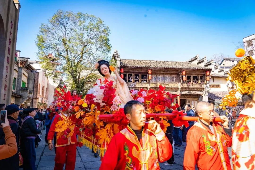 四大美女NPC乘轿辇款款而行,白天光影正好,拍照打卡更出片!沾一抹古典风华,接一份新春吉福。