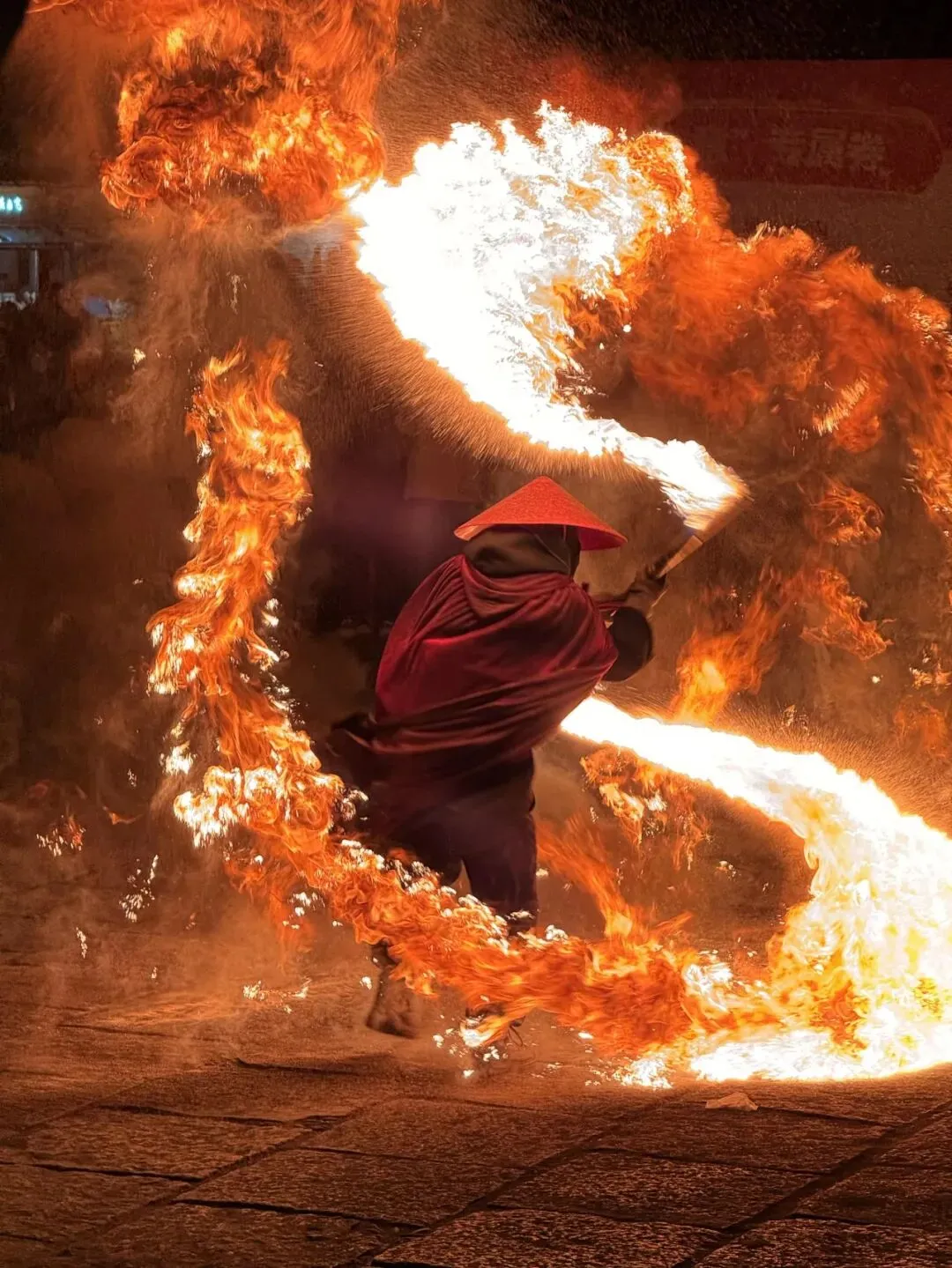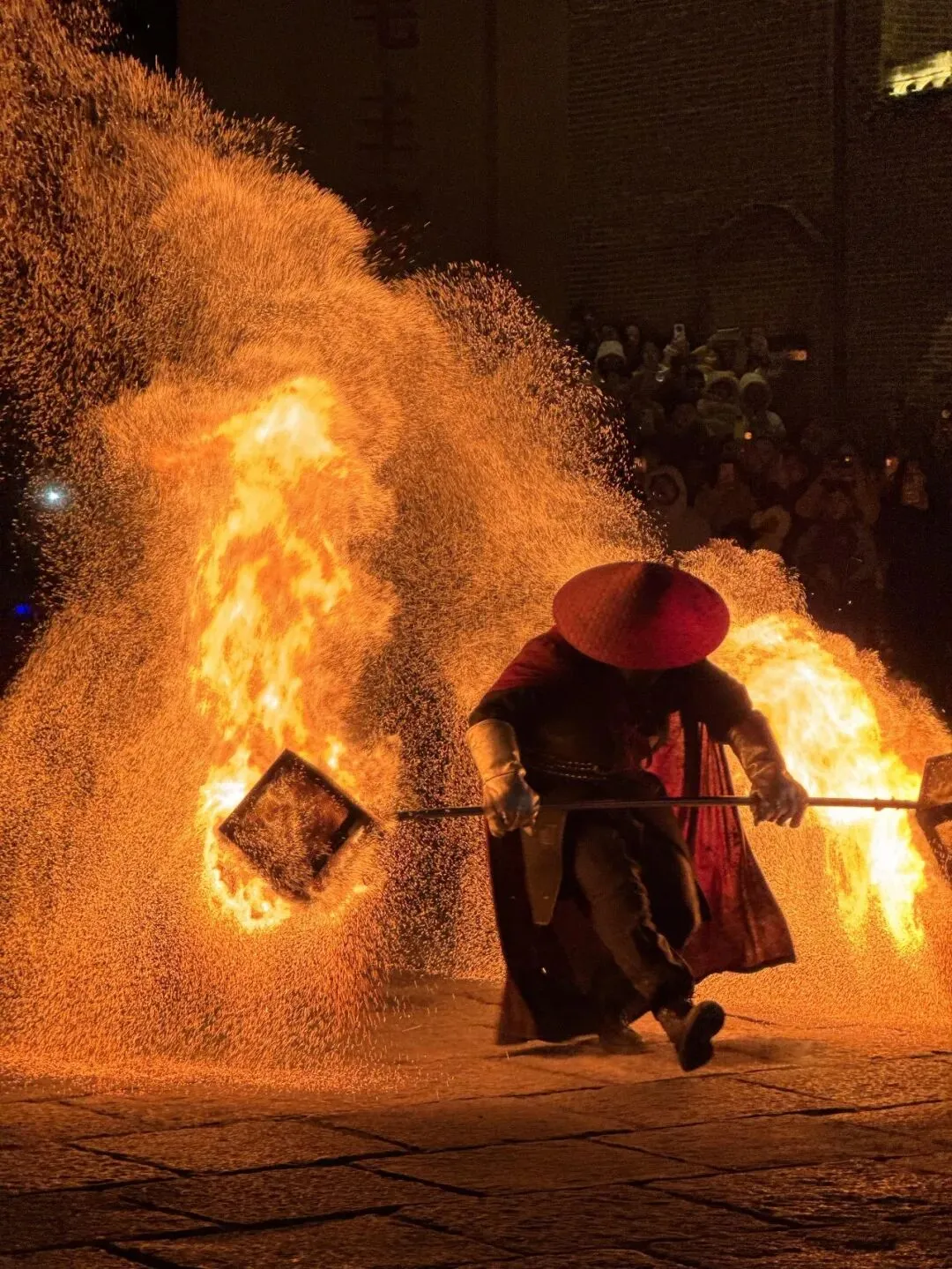程家大院码头上,铁花风火轮震撼登场;街区之内,火壶吐焰、火棍翻飞,炽热火光映红张张笑脸,火艺所至,皆是红红火火的新春好彩头。