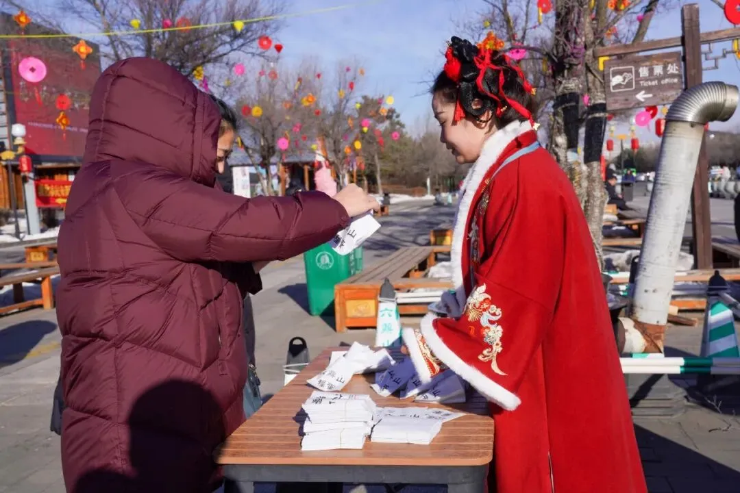 线上引流、线下兑礼,“线上有礼·福运到家”活动进一步点燃了游客的参与热情,实现线上线下双向联动、热度互通。游客服务中心门前的新春游园攻略站,不时有游客前来咨询、兑换线上好礼。凡在抖音平台购买门票并关注景区官方抖音号的游客,均可领取新春纳福卡;转发景区指定春节活动短视频,就能兑换定制帆布袋。定制帆布袋印有六鼎山特色标识,兼具颜值与实用性,每日限量50个,一经上线便被迅速兑换一空。