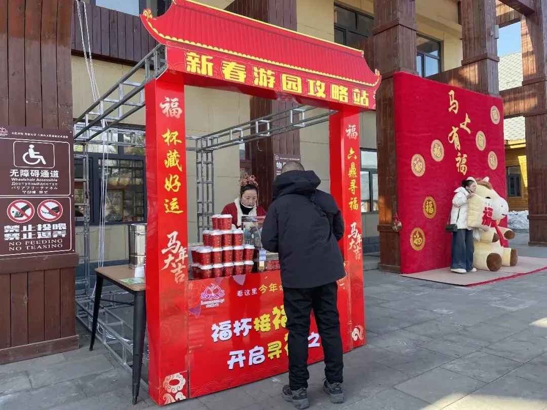 金玉满堂福蛋打卡活动同样人气高涨,成为游客入园后的“必玩项目”。游客们纷纷手持福蛋袋摆出各式喜庆姿势拍照,将照片分享至微信朋友圈,争相领取象征吉祥如意的福蛋。