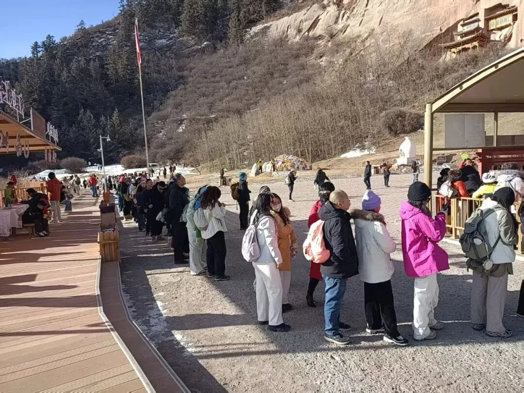 马年新春,祁连雪映千年石窟,马蹄石窟群旅游区迎来新春客流高峰。2026年2月19日(农历正月初三),景区当日接待游客4531人,较2025年同期的1434人,同比增长216%,用亮眼数据交出新春文旅“开门红”答卷。