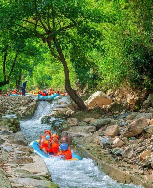这个漂流项目跟那些纯娱乐性的漂流不太一样,峡谷保留着很原始的状态,水流是自然的落差形成的,不是人工造浪,漂下来你能看到两岸的植被覆盖率特别高,水质清澈,这种体验是城市周边那些漂流项目给不了的。