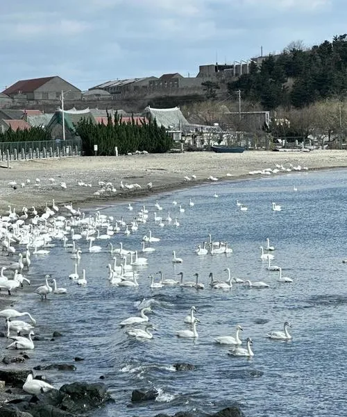 烟墩角是个小渔村,村子里就能看到天鹅,这种人和动物的距离近到让你觉得不真实,天鹅在海湾里游,渔民在岸边晾晒海带,互不干扰,这种和谐是长期形成的,不是一天两天。你在村子里走,能看到天鹅就在离你几米远的地方,它们不怕人,但也不靠近,保持着一种刚刚好的距离,这种状态会让你重新思考什么叫共存。