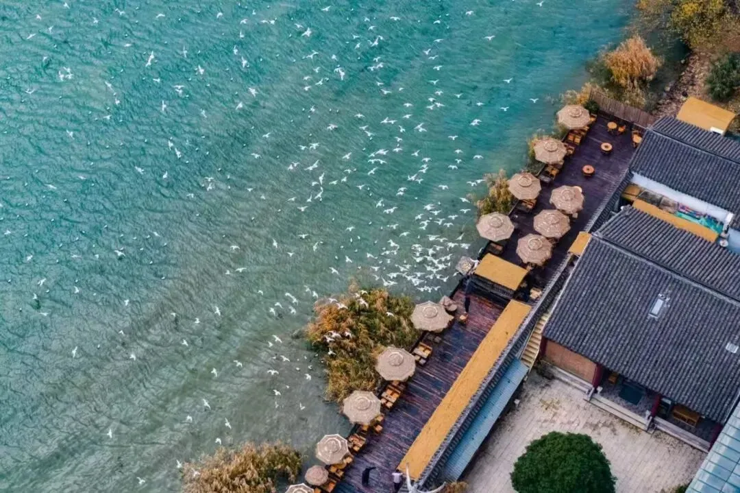 光福坎上村拥有多家网红咖啡馆和特色餐饮店,来此一边品味美食,一边远眺湖景与偶尔掠过的鸟影。