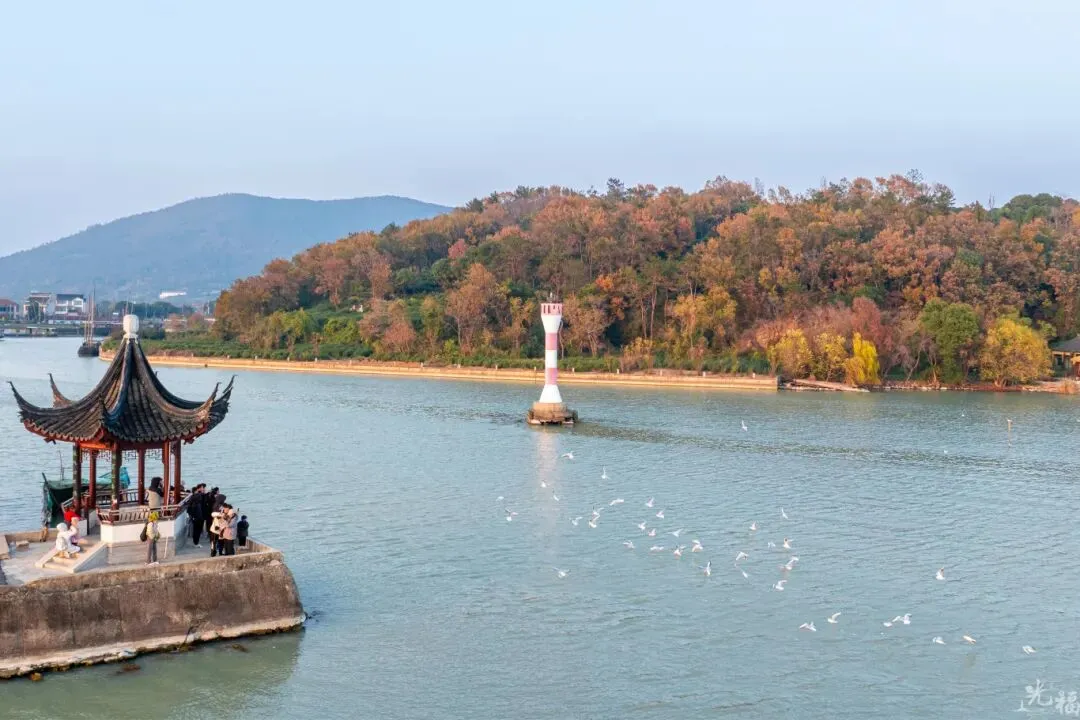 在永慧禅寺外的观景平台,既能感受古刹的宁静祥和,又能欣赏红嘴鸥在湖天之间自由翱翔。暮鼓晨钟声中,看飞鸟与禅意相融,别有一番意境。