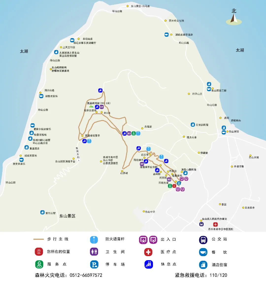 东山西街(诸公井亭、响水涧)→洞庭饭店/莘子阁面馆→雨花胜境→莫厘峰森林步道