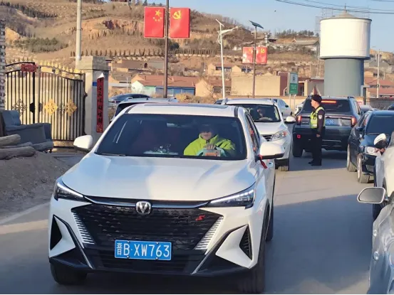 正月初三,各景点旅游流量持续升温,浑源交警坚守路面保畅通