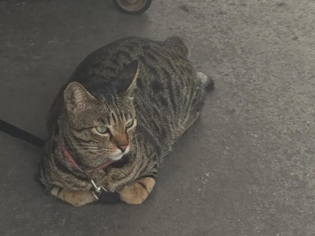 街角一只被绳子拴着的小猫咪,不知它为什麽会被拴住,或许是自由过度后的"他律"?